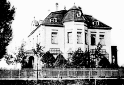 Der zweigeschossige Walmdachbau ist mit Putz und Stuck gegliedert. Auf der Gartenseite befindet sich ein Risalit mit Balkonen. Das Bauwerk, das historisierende Formen aufweist, wird in der Denkmalliste auf das erste Viertel des 20. Jahrhunderts datiert,[1] stammt aber nach anderen Quellen schon aus der Zeit um 1897.[2]