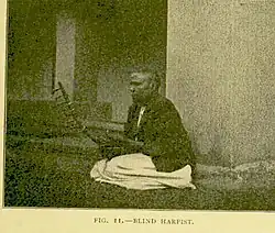Auf der Suche nach der Nilquelle kamen die britischen Afrikaforscher John Hanning Speke und James Augustus Grant 1862 nach Buganda, wo sie von Mutesa I. (reg. 1856–1884) empfangen wurden. Einen knappen Kilometer vom Herrschersitz des Kabaka befand sich der Hof der Königinmutter, wo die beiden Reisenden bei ihrem Empfang einen blinden Harfenspieler in der Nähe der Regentin antrafen. Sie befand sich oft in nächster Gesellschaft eines Harfenspielers.[6] Die Szene ist auch in Spekes Reisebericht Journal of the Discovery of the Source of the Nile (1863) abgebildet. Allein die Harfenspieler hatten einen Zugang zu den Frauen des Königs, aber um diese nicht sehen zu können, soll man ihnen das Augenlicht genommen haben.[7]