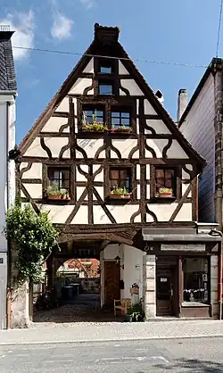 - Pfarrgasse 5 – Satteldachhaus, Obergeschoss und Zwerchhaus Fachwerk verschiefert, 1. Hälfte 18. Jh.