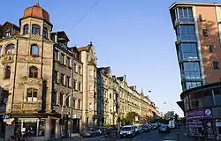 - Karolinenstraße 20 – Malerisches, viergeschossiges Eckhaus in deutscher Renaissance, Erker, Eckturm mit Schweifkuppel, 1897/98 von Moritz Haubrich; Gruppe mit Nr. 18 und Schwabacher Straße 72.