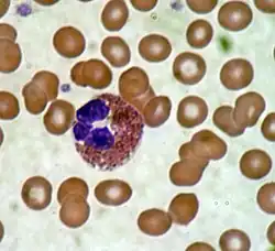 Eosinophilie ist ein medizinischer Fachausdruck für die Erhöhung der Zahl bestimmter Blutzellen, den eosinophilen Granulozyten (kurz: Eosinophile) im Blutbild. Sie ist eine Sonderform der Leukozytose. Die formale Definition einer Eosinophilie fordert mehr als 0,5 × 109 Eosinophile/l (0,5/nL) im peripheren Blut. Liegen mehr als 1,5 × 109 Eosinophile/l über einen längeren Zeitraum vor, spricht man von einer Hypereosinophilie.[1]