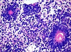 - ↑ A. R. Judkins, D. W. Ellison: Ependymoblastoma: dear, damned, distracting diagnosis, farewell!*. In: Brain Pathology. 20, 2010, S. 133–139, PMID 19120373.
