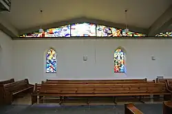 Im Chor befinden sich ein kupfernes Kreuz und eine Bergkristallkugel der Künstlerin Gertrud Heim. Die Taufschale und der kupferne Leuchter wurden von dem Goldschmied Friedrich Gebhart geschaffen. Die nördliche Giebelwand des Chorraums schließt ein Buntglasfenster. Es wurde, wie die der Seitenschiffe, von Ilselore Bezzenberger entworfen und von den Glaskunstwerkstätten Einhorn in Boppard hergestellt.