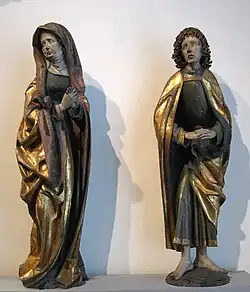- einige Apostel und Heilige darstellende Büsten und Figuren aus dem in seiner Ganzheit verlorenen ehemaligen gotischen Chorgestühl in der Frauenkirche, München