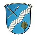 Am 1. Juli 1968 wurde der Gemeinde Erbach im damaligen Landkreis Limburg ein Wappen mit folgender Blasonierung verliehen: In blauem, durch einen silbernen Schräglinksbach geteilten Schild oben ein silbernes Schwert und eine silberne Lanze schräggekreuzt, unten ein goldenes Erlenblatt.[13]
