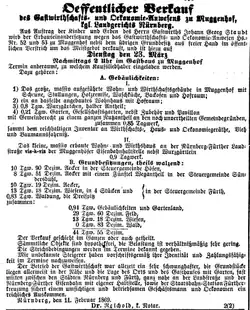 - ↑ Oeffentlicher Verkauf. In: Fränkischer Kurier, 36. Jahrg, Nr. 74, Nürnberg, 15. März 1868.