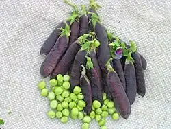 Die Hülsenfrüchte sind 3 bis 12 Zentimeter lang, 1 bis 2,5 Zentimeter dick und je nach Sorte grün, gelb oder bräunlich, selten schwarz. Die Hülsenfrüchte enthalten vier bis zehn Samen, die wie die Pflanze Erbsen genannt werden.