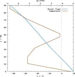 - Stratosphäre bis zur Stratopause in 50 km Höhe