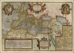 Überliefert ist der Begriff nach Heinz Bellen erstmals beim Triumphzug des Pompeius (61 v. Chr.) in Anklang an das Weltreich (griech. Oikumene) Alexanders des Großen, dessen Schrifttafeln die Siege in Afrika, Europa und Asien als „totum orbem terrarum nostro imperio“ besingen.[1][2] Da unter Pompeius und im Mittelalter die Kugelgestalt der Erde bereits unstrittig war, steht das Wortspiel (Paronomasie) im Vordergrund, nicht die physische Gestalt des Erdkörpers als Flache Erde.