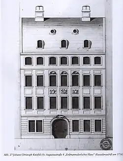 Das Gebäude wurde 1738/39 für den königlichen Hausmarschall Ernst Ferdinand von Erdmannsdorf erbaut. Das Gebäude war siebenachsig. Drei Obergeschosse erhoben sich über einem rustifizierten Erdgeschoss. Die drei mittleren Achsen waren aufwändig mit Rokoko-Dekor geschmückt.