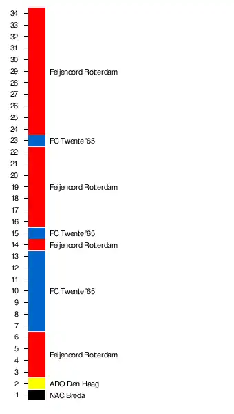 | Feijenoord Rotterdam | 1:1 | 3:0 | 4:0 | 2:0 | 1:1 | 2:1 | 2:1 | 3:0 | 6:0 | 3:0 | 1:0 | 4:1 | 4:1 | 1:0 | 2:0 | 2:0 | 5:0 | |