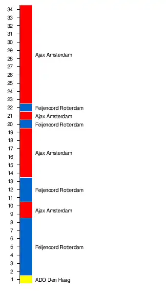 | 1. | Ajax Amsterdam | 3:3 | 3:0 | 3:0 | 2:1 | 2:1 | 2:0 | 2:0 | 5:1 | 2:1 | 2:1 | 4:1 | 4:0 | 4:1 | 6:1 | 4:0 | 3:0 | 8:0 | |