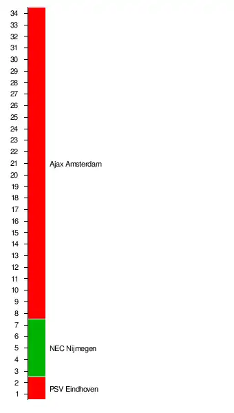 | 2. | Ajax Amsterdam | 1:4 | 2:1 | 4:1 | 0:0 | 2:0 | 1:2 | 6:0 | 3:1 | 2:2 | 3:1 | 3:2 | 1:1 | 5:0 | 6:1 | 2:0 | 5:1 | 7:0 | |