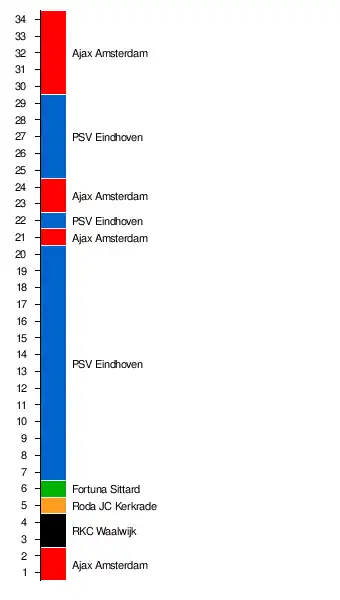 | 1. | Ajax Amsterdam | 3:2 | 4:0 | 5:2 | 2:2 | 0:0 | 1:0 | 0:0 | 3:2 | 1:0 | 1:1 | 1:2 | 1:0 | 3:0 | 5:0 | 3:0 | 6:0 | 5:0 | |