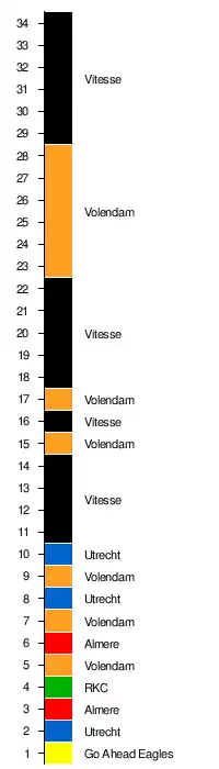 | Vitesse Arnheim | 1:2 | 1:3 | 2:2 | 0:2 | 1:2 | 1:4 | 0:0 | 1:3 | 0:2 | 0:2 | 0:3 | 3:2 | 1:1 | 0:0 | 2:0 | 1:1 | 1:1 | |