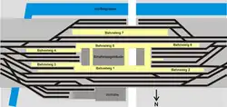 Der Neubau des Bahnhofs erfolgte in mehreren Abschnitten, da der Zugverkehr vollständig aufrechterhalten werden musste. Hierzu wurde zuerst auf der Südseite des Bahnhofs ein provisorischer Bahnsteig für das zusätzliche Gleis 7a gebaut. Realisiert wurden Inselbahnsteige mit neun Durchgangsgleisen sowie vier Stumpfgleisen. Die beiden außen liegenden Fernbahnsteige 1/2 und 9/10 haben eine Länge von 420 Meter.