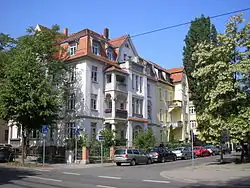 Dominant ist die Blockrandbebauung mit viergeschossigen Mietshäusern aus der Zeit zwischen 1880 und 1910 auf regelmäßigem Straßengrundriss. Sie erstreckt sich in einem Gürtel vom Gothaer Platz im Westen über den Gutenbergplatz und den Rosa-Luxemburg-Platz im Norden und den Steinplatz und Leipziger Platz im Osten sowie das Spielbergtor im Südosten bis zum Stadtpark am Hauptbahnhof. Zwischen Hauptbahnhof, Steigerstraße und Gothaer Platz im Süden und Südwesten der Stadt liegt das vorstädtische Villenviertel mit einzeln stehenden Mietshäusern und Villen des Bürgertums, ebenfalls aus der Zeit zwischen 1880 und 1910.
