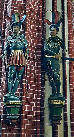 Erich II. (rechts), Memorialstatue im Doberaner Münster (mit seinem Onkel Balthasar)
