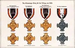 - ↑ Stiftung des Erinnerungskreuzes. Allerhöchste Ordre vom 20. September 1866. In: Ludwig Hahn (Hrsg.): Zwei Jahre Preußisch-Deutscher Politik 1866-1867. Berlin 1868, S. 235f.