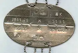 Die Erkennungsmarke der Streitkräfte der Vereinigten Staaten unterscheidet sich im Aufbau etwas von den in Europa gebräuchlichen Marken, erfüllt aber den gleichen Zweck. Sie dient zur eindeutigen Identifizierung von im Einsatz gefallenen Soldaten. Im Gegensatz zu beispielsweise den deutschen Erkennungsmarken (umgangssprachlich auch als „Hundemarke“ bezeichnet), besteht diese Marke aus zwei Teilen.