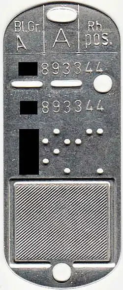 Einheiten, die einem erhöhten Risiko der Gefangennahme ausgesetzt waren, wie z. B. Grenzwacheinheiten oder auch Fallschirmjäger, oder bei denen generell bei Gefangennahme die Einheit verschleiert werden sollte, bekamen nur Nummern auf ihre Erkennungsmarke.