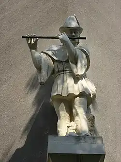 Nach der kleinen Parkanlage des Mundyparks zwischen Erlachgasse, Steudelgasse und Mundygasse liegt eine städtische Wohnhausanlage, 1938 erbaut von Franz Wiesmann, mit zwei Plastiken an den beiden Hausecken zum Park, Dudelsackpfeifer und Flötenbläser (1954) von Theodor Igler. Sie steht unter Denkmalschutz.