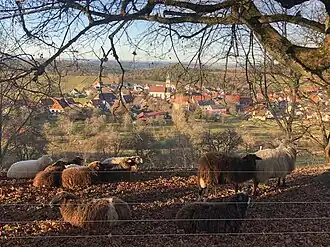 ![]() Blick vom Naturschutzgebiet Eichberg auf Erlaheim