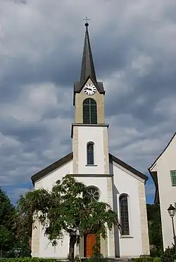 Die Pfarrkirche St. Nikolaus wurde 1871 nach den Plänen des Architekten Wilhelm Keller, Luzern, erbaut, weil die alte Kirche zu klein war. Eine Urkunde von 1173 erwähnt auch eine Kirche, die vermutlich dem hl. Nikolaus von Myra geweiht war. 1466 wird ein Neubau erwähnt. Somit ist die heutige Kirche der dritte Bau an diesem Ort. Am 15. Februar 1778 erhielt Erlinsbach den Leib des Katakombenheiligen Felix.[6] An Weihnachten 1871 konnte in der neuen Kirche der erste Gottesdienst gefeiert werden. Eingeweiht wurde sie aber wegen des Kulturkampfes erst am 5. September 1886. 1910 wurde der Innenraum aufwändig im Stil des Historismus ausgestattet, mit drei geschnitzten Altären und dekorativen Mustern an Wänden und Decke, ausgeführt durch die schweizweit bekannte Werkstätte von Carl Glauner, Will SG.