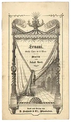 Ernani ist eine Oper (Originalbezeichnung: „Dramma lirico“) in vier Akten und fünf Bildern. Sie wurde 1844 von Giuseppe Verdi komponiert. Das Libretto schrieb Francesco Maria Piave. Am 9. März 1844 wurde sie im Teatro La Fenice in Venedig uraufgeführt.