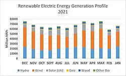 Nach vorläufigen Daten der US Energy Information Administration betrug der Anteil der erneuerbaren Energien in den Vereinigten Staaten am gesamten Primärenergieverbrauch im Jahr 2022 etwa 13,1 %[1] und etwa 21,5 %[1] des produzierten Stroms in den Vereinigten Staaten. Seit 2019 ist Windenergie die größte erneuerbare Energiequelle im Land und erzeugte 2022 rund 10,2 % des Gesamtstroms.[2]