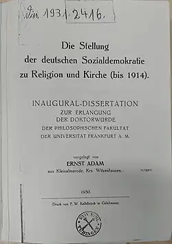 - Die Stellung der deutschen Sozialdemokratie zu Religion und Kirche (bis 1914). Gelnhausen, 1930