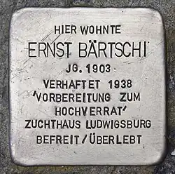 Ernst Bärtschi kam abgemagert und als gebrochener Mann zurück in die Schweiz. 1950 wurde das NS-Urteil gegen ihn aufgehoben, und der deutsche Staat zahlte ihm für die Zwangsarbeit eine Entschädigung. Im September 1957 stellte er auch in der Schweiz einen Antrag auf Entschädigung. Die im selben Jahr geschaffene Kommission für Vorauszahlungen an schweizerische Opfer der nationalsozialistischen Verfolgung zweifelte an seiner Loyalität der Schweiz gegenüber, weil er sich für deutsche Sozialdemokraten eingesetzt hatte. Von Schweizer Seite erhielt Bärtschi nie eine finanzielle Unterstützung. Der Deutsche Gewerkschaftsbund sprach ihm eine kleine Rente zu. 1981 dankten der Konstanzer Bürgermeister Willy Weilhard und der SPD-Stadtrat Erwin Reisacher im Namen der Stadt Konstanz für seinen Mut und Einsatz in den Jahren 1933 bis 1938. Die Konstanzer SPD übergab ihm aus einer für ihn organisierten Sammlung Geld.[1] Ernst Bärtschi starb am 7. Dezember 1983 in Scherzingen.