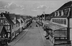 Der Graf entschloss sich zur Gründung einer Vorstadt außerhalb der Stadtmauern („vor dem Untertor“ – von den Exulanten fortan Jerusalemer Tor genannt), ursprünglich gräfliches Gartenland, das ein eigenes Wehrsystem erhalten sollte. So entstand durch rasch voranschreitende Baumaßnahmen in weniger als 20 Jahren ein gänzlich neues Stadtbild in „wohlproportioniertem Gleichmaß“.[3] Erreicht wurde das, indem der Anspruch auf kostenloses Baumaterial und eine zehnjährige Steuerbefreiung an die Einhaltung der Gestaltungsvorgaben gebunden wurde. Diese Vorgaben besagten, dass entlang eines Straßenzuges, an dem die Grundstücke abgemessen worden waren, nach einheitlichem Plan gestaltete zweigeschossige Fachwerkhäuser zu errichten waren. Sie mussten auf der Südseite Rücksicht auf den Verlauf des Küchenbachs nehmen und ihre Nordseite musste den Geländeanstieg berücksichtigen. Die Häuser haben im Satteldach ein Zwerghaus oder ein Gauben und stehen traufseitig zur Straße. In der Mitte befindet sich der Eingang, zu beiden Seiten gehen die weiteren Räume ab. Die Küche liegt an der Verlängerung des Hausflurs an der Hofseite. Auch wenn die Häuser durch Ladeneinbauten heutzutage stark verändert sind, lässt sich anhand der Flurkarten 1831/32[4] bzw. 1844/48[5] sowie zahlreicher Fotografien des frühen 20. Jahrhunderts der Weitblick urbaner Entwicklung ablesen. Bereits kurz nach der „Erschließung“ der Vorstadt interessierten sich auch Handwerker aus der Stadt selbst für die mit dem Bau verbundenen Privilegien und Vorteile. Der Erfolg dieser Peuplierungspolitik zeigte sich daran, dass sich die Bevölkerung von Büdingen innerhalb von 30 Jahren mehr als verdoppelte. Bereits im Jahr 1731 waren neben drei Knopfmachern 18 Strumpfweber, zwei „Chirurgen“ (Wundärzte) sowie gar drei Apotheker zu finden. 1717 gelang es dem Grafen, Johann Friedrich Regelein aus Nürnberg als Hofbuchdrucker in die Stadt zu ziehen. Eine Walkmühle am Seemenbach wurde als Grundlage für die Textilverarbeitung wichtig, und die 1714 eingerichtete Papiermühle entfaltete ab 1735 durch den Papiermacher Johann Christian Illig ihre Blüte[6].