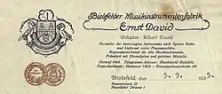 Ostern 1910 feierte die „Blechblasinstrumenten-Fabrikation und Musikalienhandlung“ Ernst David ihr 25-jähriges Bestehen.[6]