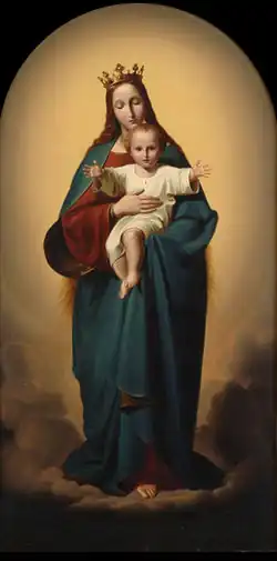 Ernst Deger studierte ab 1828 an der Berliner Kunstakademie und wechselte 1829 an die Kunstakademie Düsseldorf, wo er bei Wilhelm von Schadow studierte. 1834–1835 war er Schüler der dortigen „Meisterklasse“. Im Auftrag des Kunstvereins für die Rheinlande und Westfalen schuf er 1836/1837 ein Altarbild für St. Andreas (Düsseldorf), das Maria als „Himmelskönigin“ zeigt und bald zu einem der populärsten religiösen Bilder der Düsseldorfer Malerschule avancierte. Es fand als kleines Andachtsbildchen einen Weg in zahlreiche katholische Gebetbücher, war aber auch als großformatiger Wandschmuck recht beliebt. Offensichtlich hat Deger mit seiner Darstellung Marias als Himmelskönigin, die in ihren Armen das Jesuskind hält, genau den religiösen Geschmack seiner Zeit getroffen. Das Bild erreicht seine Wirkung vor allem dadurch, dass Jesus nicht als Säugling, sondern als etwa zwei- oder dreijähriger Junge dargestellt ist, der den Betrachter direkt anschaut und seine Arme einladend ausbreitet. Arm- und Körperhaltung Jesu ergeben dabei ein Kreuz, deuten also bereits den späteren Tod des Kindes an.