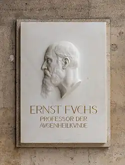 Ernst Fuchs war von 1881 bis 1885 Professor an der Universität Lüttich und anschließend bis 1915 Vorstand der Wiener Augenklinik. Er gilt als Begründer der pathologischen Anatomie des Auges und legte eine Sammlung mit Augenschnitten an[2]. Außerdem begründete er die histologische Fundierung von Krankheitsbildern und entwickelte neue Operationsmethoden.