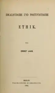 Laas hielt den Positivismus für die „wissenschaftlich allein berechtigte“ Philosophie. Dieser sei nämlich frei von den „willkürlichen Absolutheiten der spekulativen Philosophie“, vor allem der Hegels – so P. Jacob Kohn in seiner Dissertation über Laas’ Positivismus – und verwende die zur Zeit praktizierte Methode der Wissenschaften.[9] Laas unternahm daher mit seiner dreibändigen Veröffentlichung Idealismus und Positivismus den Versuch, eine einheitliche, auch den 'sittlichen' Anforderungen genügende Philosophie „auf der festen Basis der Erfahrung“, genauer auf der Basis sinnlicher „Warnehmung“ zu begründen.[10] Er verwendete für diese Basis auch Termini wie Tatsachen, Empfindungen, Erlebnisse und Erinnerungen.