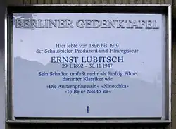 Ernst Lubitsch war der Sohn des Damenschneiders Simcha (Simon) Lubitsch und dessen Frau Anna, geb. Lindenstaedt. Seine Eltern waren aschkenasische Juden; der Vater stammte aus Grodno im heutigen Belarus, die Mutter aus dem brandenburgischen Wriezen. Ernst Lubitsch besuchte das Sophiengymnasium in Berlin (mit seinem späteren Kollegen Lothar Mendes). Nach einer Lehre als Stoffhändler wurde Lubitsch Schüler von Max Reinhardt, dem damaligen Intendanten des Deutschen Theaters in Berlin. Erste Auftritte an Kabaretten und Kleinkunstbühnen folgten, ehe er im Jahr 1911 als Schauspieler am Deutschen Theater engagiert wurde.[1] Seine erste nachweisbare Filmrolle hatte Lubitsch bei der Deutschen Bioscop GmbH, von der er für kurze Zeit unter Vertrag genommen wurde, in dem Film Die ideale Gattin. Später führte Lubitsch selbst Regie, erstmals in Blindekuh,[2] und trat gelegentlich noch als Schauspieler auf. Nachdem er zunächst vor allem Slapstick-Filme gedreht hatte, wechselte er ab 1919 immer wieder das Genre und inszenierte abwechselnd historische Kostümfilme und Komödien, vorzugsweise mit Ossi Oswalda sowie Emil Jannings oder Pola Negri in den Hauptrollen. Zu Lubitschs Mitarbeitern gehörten regelmäßig der Drehbuchautor Hanns Kräly, die Kameraleute Theodor Sparkuhl und Alfred Hansen und der Szenenbildner Kurt Richter.[1]