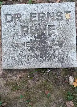 Ab 21. November 1944 war er Korpsarzt des Stellvertretenden Generalkommandos VIII. Armeekorps und gleichzeitig Wehrkreisarzt VIII. Am 20. April 1945 wurde er noch zum Generalarzt befördert und kam später in sowjetische Kriegsgefangenschaft. Ernst Rühe verstarb am 11. Februar 1951 in sowjetischer Kriegsgefangenschaft im Kriegsgefangenenlager 5110/48 Woikowo und wurde auf einem Generalsfriedhof in Tschernzy beigesetzt.
