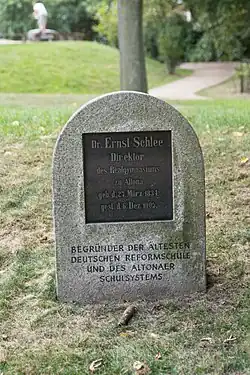 An Ernst Schlee erinnert ein Gedenkstein[2] in dem nach ihm benannten Schleepark, eine öffentliche Grünanlage entlang der Struenseestraße in Altona.