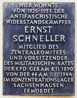 - ↑ Schneller, Ernst. In: Hermann Weber, Andreas Herbst: Deutsche Kommunisten. Biographisches Handbuch 1918 bis 1945. 2., überarbeitete und stark erweiterte Auflage. Dietz, Berlin 2008, ISBN 978-3-320-02130-6; bundesstiftung-aufarbeitung.de