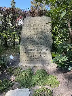 Ernst Struck lehrte und forschte insbesondere auf dem Gebiet der pädagogischen und forensischen Psychologie.[2] Er verstarb 1954 im Alter von 64 Jahren in der Charité und wurde auf dem Friedhof Zehlendorf (Feld 008-949) neben seiner Frau Alma geb. Doss (1887–1984) beigesetzt.