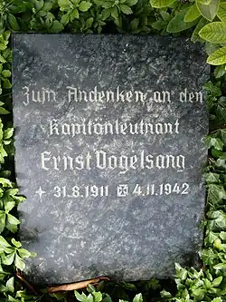 Die Familie Vogelsang stellte einen Gedenkgrabstein für Ernst Franz Maria in ihrem Familiengrab auf dem Lohtorfriedhof in Recklinghausen auf.