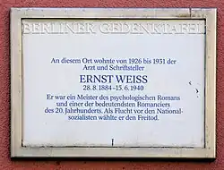 Nach einem kurzen Aufenthalt in München ließ sich Weiß Anfang 1921 in Berlin nieder. Dort arbeitete er als freier Schriftsteller, u. a. als Mitarbeiter beim Berliner Börsen-Courier. In den Jahren 1926 bis 1931 lebte und wirkte Weiß in Berlin-Schöneberg. Am Haus Luitpoldstraße 34 erinnert daran eine Gedenktafel (mit falschem Geburtsjahr, 1884 statt 1882). Im selben Haus wohnte zeitweise der Schriftsteller Ödön von Horváth, mit dem Weiß eng befreundet war.[1]