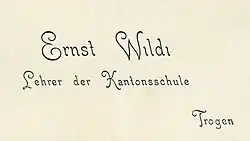 - ↑ Ernst Wildi: Brief an die Kantonsschulkommission vom 7. Februar 1930. Staatsarchiv Appenzell Ausserrhoden, D.027-60-5-13.