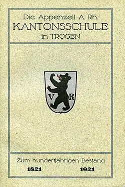 - ↑ Ernst Wildi: Die Appenzell a. Rh. Kantonsschule in Trogen zum hundertjährigen Bestand. Eigenverlag, Trogen 1921, S. 3–4.