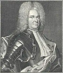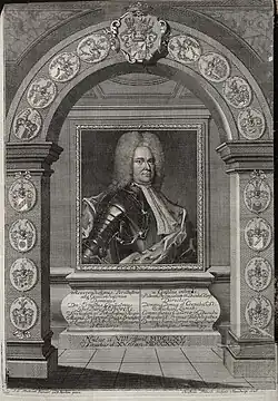 Kupferstich (Ausschnitt) 1726 von Christian Fritzsch in Hamburg nach Vorlage post mortem von J. G. Fritzsch junior; Österreichische Nationalbibliothek