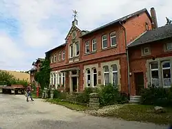 Nur der ehemalige Schweinestall sowie das Erdgeschoss des Hauptgebäudes mit seinen Nebengebäuden sind noch in ihrem Ursprungsbestand erhalten. Alle anderen Gebäude sind im Laufe der letzten 130 Jahre um-, aus- oder dazugebaut worden. Das 1878 fertiggestellte Pächterhaus erhielt nach 1920 im Mitteltrakt ein neues Dach und wurde 1934 um ein Geschoss erhöht, die beiden Seitenflügel den neuen Gegebenheiten angepasst. Der Mitteltrakt zeigt sich deshalb heute, im Gegensatz zu den eingeschossigen Seitenflügeln, zweigeschossig mit einem zwerchhausähnlichen Uhrengiebel mit geraden Schenkeln und abgetreppter Binnenfläche. Der insgesamt elfachsige Bau ist in Ziegel mit Sandsteingliederungen ausgeführt, die durchgängigen Segmentbogenstürze der Fenster sind im Erdgeschoss aus Sandstein, im Obergeschoss aus Ziegel.