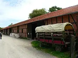 Auch die Fassungen der Fenster und der über ihnen angeordneten Ventilationsöffnungen der lang gestreckten Scheunen und Stallungen sind, wie auch die Sockelläufer, in Sandstein ausgeführt. Auf Ornamentik wurde, den baulichen Prinzipien der damaligen Industriearchitektur folgend, fast völlig verzichtet. Nur die eisernen inneren Zuganker an den Fassaden sind durch verzierte Rosettenköpfe hervorgehoben.[3]