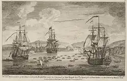 Des Weiteren ließen die Franzosen sieben Linienschiffe in Rochefort und acht in Brest ausrüsten, die jedoch ebenfalls aufgrund der strengen Blockade, die die Flotte von Admiral Keppel verhängte, ihre jeweiligen Häfen nicht verlassen konnten.[15] Am 8. Juni, nach mehr als einem Monat Belagerung von Le Palais, stimmte der Chevalier de Sainte-Croix der Kapitulation zu, nachdem er erkannt hatte, dass keine Verstärkung eintreffen würde. Sainte-Croix erhielt durch die mit dem britischen Kommandanten unterzeichnete Vereinbarung die Möglichkeit, mit seinen Männern ehrenvoll bis zum Strand zu marschieren, um sich frei in Richtung Lorient einschiffen zu können.[16]